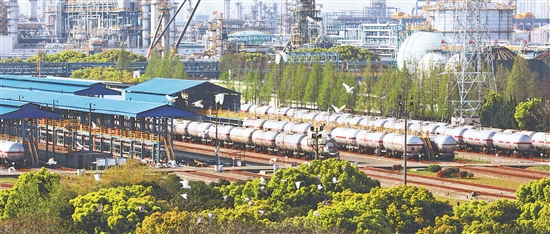 走进位于浙江宁波的中国石化镇海炼化白鹭园,几只白鹭掠过湖面站上枝头,为管道、油罐密布的厂区增添勃勃生机。该企业坚持“建设人与自然和谐共生的现代化”,营造良好生态环境,每年春天会有上千只白鹭迁徙到此。何雯 摄