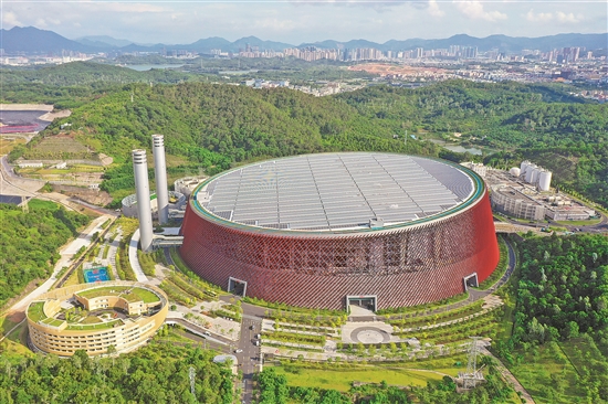 广东深圳龙岗能源生态园占地面积约54万平方米,日处理生活垃圾5000吨,是目前国内单体建设规模最大的超大型生活垃圾焚烧处理设施,园区内配套建设科普教育基地及餐饮服务,未来将对市民开放。