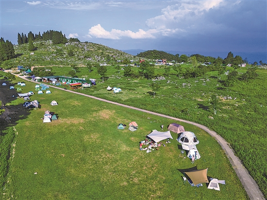 这是8月16日在重庆市石柱土家族自治县鱼池镇拍摄的千野草场景区露营基地。
