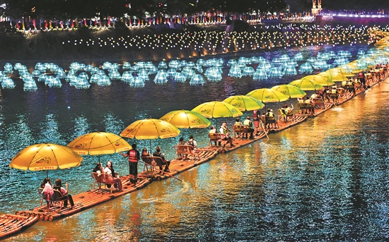宣恩县以穿城而过的贡水河为轴心,围绕“景城一体,主客共享”理念,打造以县城为核心的国家4A级风景区。入夜时分,市民和游客逛亲水步道、赏璀璨夜景、品地方小吃、乘竹筏游河。丰富的夜游生活,使这座山区小城的“夜经济”持续火热。