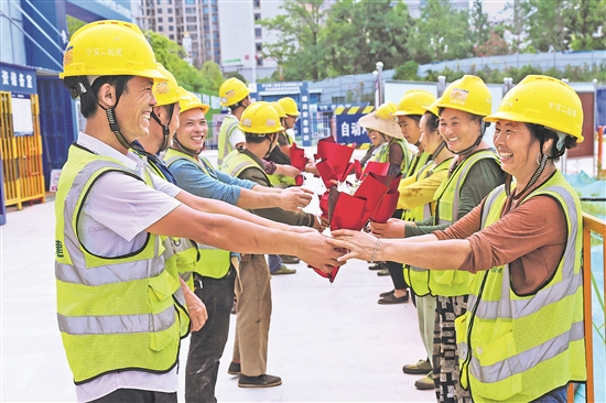 “老婆,我爱你!”钢筋工何大全把一支玫瑰花送给妻子,妻子则给他送上了寓意“陪你一辈子”的杯子,还给了丈夫一个大大的拥抱,叮嘱他在工地上要注意安全。8月19日,七夕节来临之际,在中交二航局承建的四川省资阳市中交锦上项目工地上,一场“浪漫七夕,爱在工地”主题活动正在进行,项目部为7对工人夫妻搭建爱的鹊桥,送去爱的祝福。
