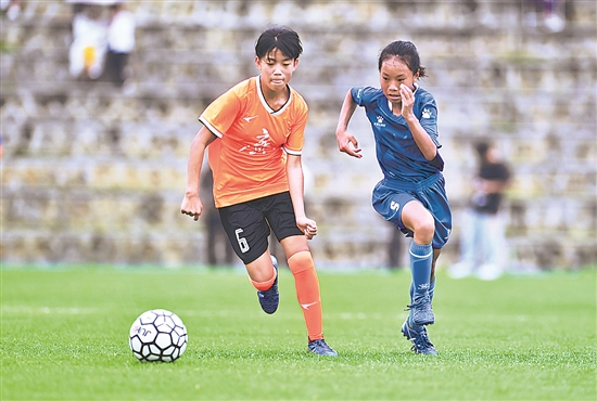 青少年女足的普及和培养,对中国女足而言至关重要。图为来自四川凉山的小女足队员在训练中。新华社记者 刘坤 摄