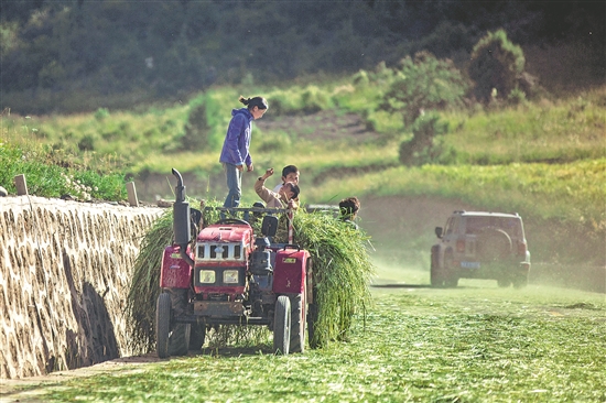 8月23日,青海省玉树藏族自治州囊谦县,牧民正在收集牧草为牛羊“过冬”做准备。