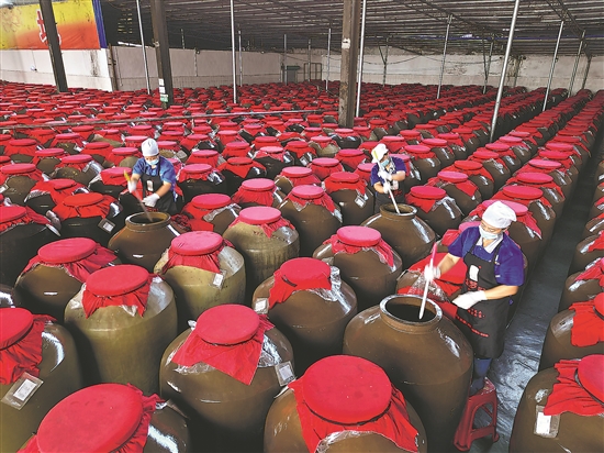 8月22日,贵州省麻江县明洋食品有限公司,工人在搅拌发酵中的红酸汤。红酸汤是贵州的传统美食。近年来,当地建立辣椒、西红柿等原料种植基地3万余亩,每年提供就业岗位1350余个,带动周边5万名农民增收。本报通讯员 王炳真 摄
