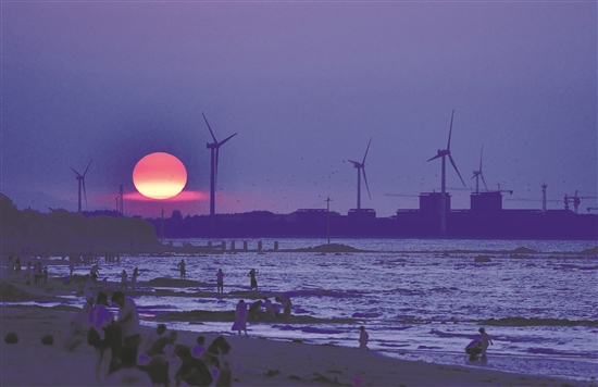 8月23日,山东威海,在荣成市鸡鸣岛周边海域,游客欣赏海上日落。