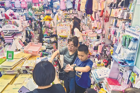 随着新学期的到来,学生和家长忙着添置新的学习用品,文具、教辅书、电子产品等销售火爆,“开学经济”持续升温。
