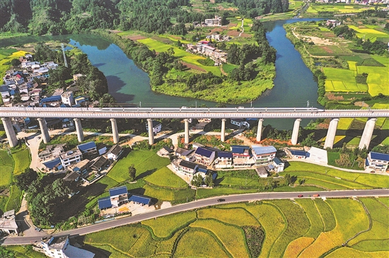 图为8月31日,一列动车组列车经过位于贵州省都匀市境内的贵南高铁营盘清水河双线特大桥。新华社记者 杨文斌 摄