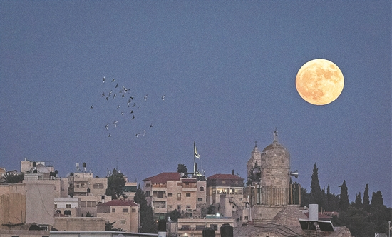 这是当地时间8月30日在耶路撒冷拍摄的“超级月亮”。“超级月亮”一般指近地点满月。这次“超级月亮”是今年最大、最亮的一次。同时,这次“超级月亮”也是比较罕见的“超级蓝月”,即一个月内出现的第二次满月,平均每2.4年出现一次。新华社记者 陈君清 摄