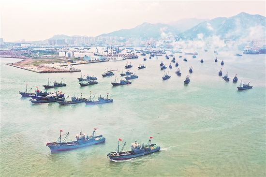 9月1日,在山东省荣成市石岛渔港,渔船出海驶向秋季捕捞作业海域。