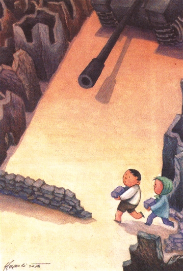 战火中,孩子们是无辜的受害者,他们失去学校和家庭,幼小心灵受到极大伤害。孩童为阻止战车推进用尽绵薄之力……