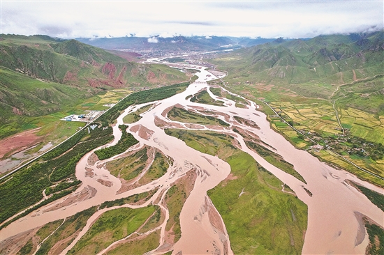 扎曲河是澜沧江上游主要干流之一,纵横交错的河水在群山中蜿蜒流淌,形成独特的高原河流景观。举目远眺,潺潺的扎曲河四散流淌,勾勒出了一幅绚丽画卷。近年来,当地充分挖掘景观优势,拓展旅游产业,吸引了不少游客打卡游览。图为近日拍摄的青海省玉树藏族自治州囊谦县境内的扎曲河网状水系。