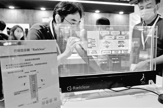 8月30日,上海国际显示技术及应用创新展在浦东新国展中心举行,JDI(日本显示器)展示的透明显示屏。