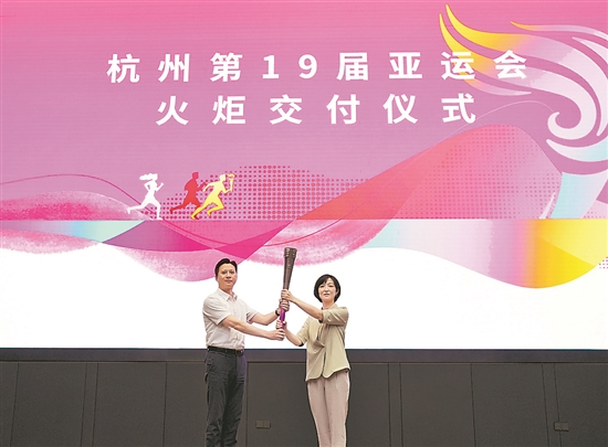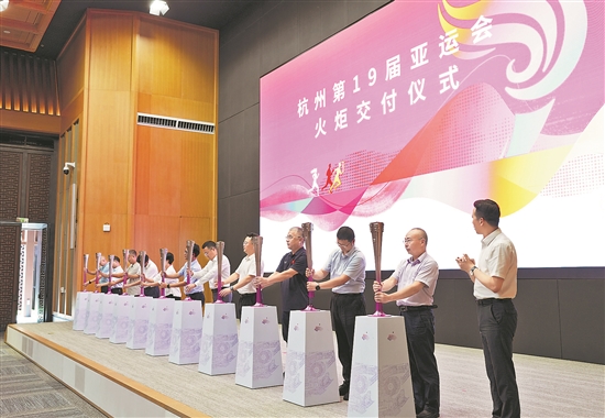 9月4日,杭州第19届亚运会火炬交付仪式在浙江宁波举行。2000多把火炬将装车运往全省11个地市,标志着亚运会火炬传递活动已准备就绪。