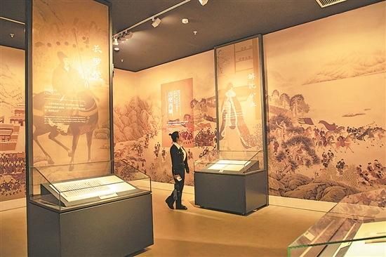 9月7日,嘉宾在甘肃简牍博物馆展厅内参观。当日,甘肃省简牍博物馆举行开馆仪式,千余枚珍贵简牍原件走出“深闺”首次集中亮相,生动展现两千多年前灿烂中华文明和丝绸之路繁盛景象。