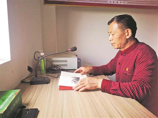 张连生在村广播室里向村民宣讲焦裕禄的“三股劲”。受访者供图