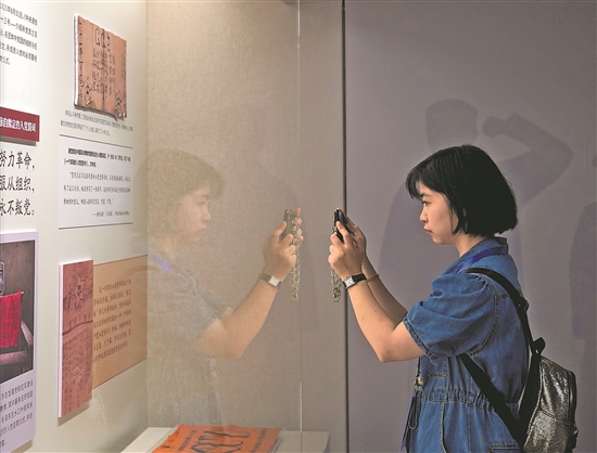 9月11日,“永恒的誓言——中国共产党入党宣誓文物史料专题展”开幕式在中共一大纪念馆举行。展览展出文物史料270件(套),引领观众从践行誓言的典范中感悟铮铮誓言中的思想内涵与精神力量。新华社记者 刘颖 摄