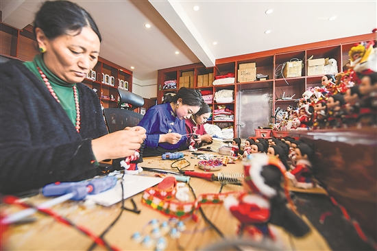 在四川省阿坝藏族羌族自治州若尔盖县唐克镇白河社区的手工合作社内,摆放着众多手工娃娃。它们的藏族名字叫“亚一则则”,意为“吉祥娃娃”。随着合作社的不断发展壮大,“吉祥娃娃”如今已远销海内外。新华社记者 王曦 摄