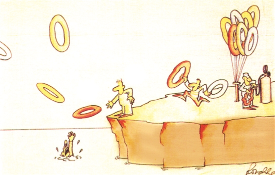 这是一场似是而非的营救。岸上的好心人听到呼救,奋力将救生圈投给溺水者……这一切都是徒劳的——“圈”内灌的是氢气。