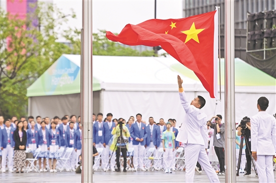 图为9月16日拍摄的中国体育代表团升旗仪式。 新华社记者 黄宗治 摄