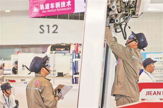 9月16日,轨道车辆技术项目选手在紧张比赛。本报记者 吴凡 摄