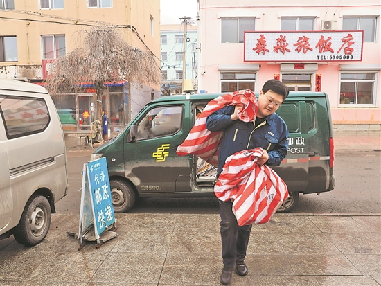 临江地属高寒山区,大半年都是“冬天模式”,长年顶着零下30多摄氏度的严寒驾驶摩托车送件,王明杰患上了严重的关节炎和风湿病,走起路来一瘸一拐,但为乡亲们跑腿办事,他乐此不疲。遇到车进不去的地方,他多是小跑着派件,生怕乡亲等着急。