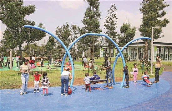 当地时间9月16日,孩子们在埃塞俄比亚首都亚的斯亚贝巴的儿童乐园玩耍。新华社记者 汪平 摄