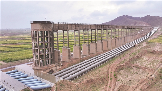 20世纪70年代,国家启动建设扶贫扬黄工程,将黄河水抬升数百米引入中部干旱带的盐池、同心、红寺堡等县区,破解水困。红寺堡扬水工程建成投运后,当地生态环境得到了根本改善,大风扬沙日数明显减少,湖泊湿地从无到有,亘古荒原变成了阡陌纵横、绿树成荫的人工生态绿洲。