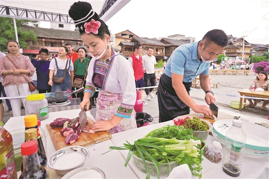 9月22日,2023年贵州省旅游餐饮技能大赛决赛在黔东南苗族侗族自治州榕江县三宝侗寨举行。来自贵州各市(州)的上百个优秀团队在这里进行厨艺对决。
