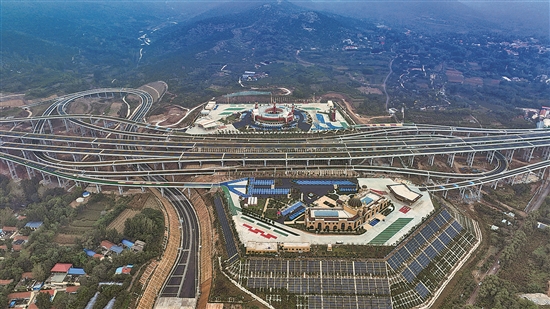 9月24日,由山东高速集团投资建设的济青中线济潍段零碳智慧高速正式通车,至此,济青中线全线贯通。济青中线济潍段是山东省“九纵五横一环七射多连”高速公路网中“射三”线,全长161.86公里,设计速度120公里/小时,双向六车道。新华社发(王继林 摄)
