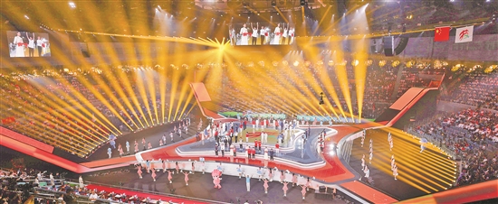 9月19日晚,在第二届全国技能大赛闭幕式上,获奖选手登台领奖,迎来高光时刻。本报记者 吴凡 摄