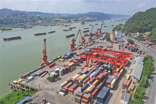 9月27日在广西梧州拍摄的繁忙的李家庄码头(无人机照片)。