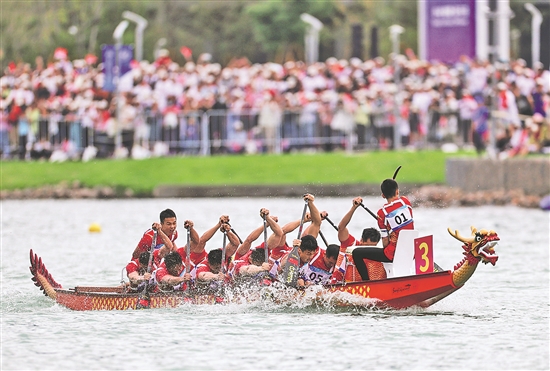 10月5日,在浙江温州龙舟运动中心进行的杭州亚运会男子组12人龙舟500米直道竞速赛中,中国队以2分09秒152的成绩获得冠军。本届亚运会龙舟比赛设6枚金牌,开赛两天来,中国队已收获4金。