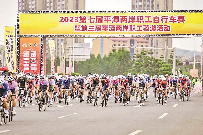 2023年第七届平潭两岸职工自行车赛在福建平潭综合实验区举办,两岸上千名职工选手参与,其中台北、台中、宜兰等16个县市的200多名台湾职工骑手跨海参赛。