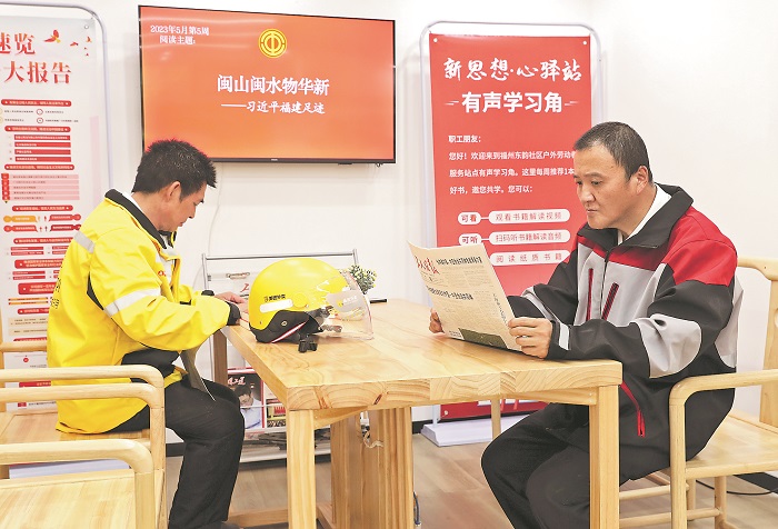 为激活并延伸工会组织思想政治引领的“神经末梢”,近年来,福建省总工会在全省工会户外劳动者服务站点推出了“共话二十大 ‘驿’起向未来”党的二十大精神“声”入驿站主题活动,在驿站通过开辟“红色阅读区”、打造“红色课堂”、开展“红色互动”,提升站点的吸引力、凝聚力和影响力,打造户外劳动者政治引领的“福建样本”。