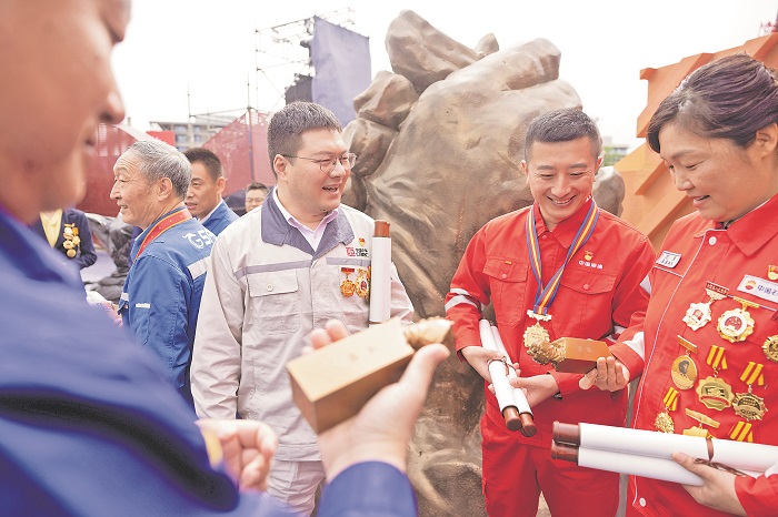 2023年4月21日,2023年“中国梦·劳动美”庆祝“五一”国际劳动节心连心特别节目在北京首钢园录制。录制开始前,劳模工匠们收到一份特殊的礼物——由节目组联合中央美院为他们定制的专属印章。本报记者 王伟伟 摄