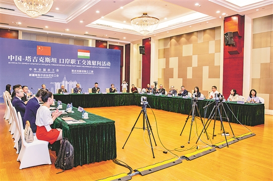 ⑦8月29日,由中华全国总工会与新疆维吾尔自治区总工会联合举办的中国-塔吉克斯坦口岸职工交流慰问活动在乌鲁木齐举行。