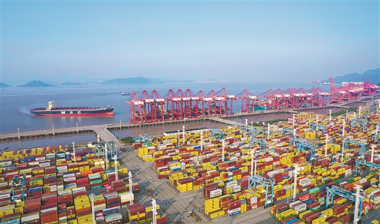 浙江省港航管理中心统计数据显示,宁波舟山港今年前三季度累计完成货物吞吐量10.15亿吨,同比增长5.85%;完成集装箱吞吐量2726万标准箱,同比增长3.56%。