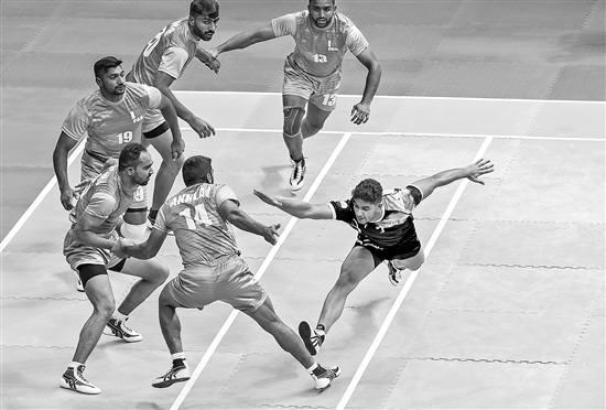 “看热闹”的情形,也出现在卡巴迪比赛现场。这项有4000多年历史的运动如今主要在西亚和南亚地区流行。因为被认为与儿童游戏“老鹰捉小鸡”有相似之处,早在亚运会开幕前,不少中国观众就对卡巴迪充满了好奇。