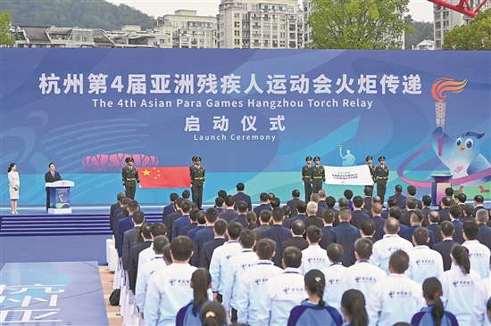 当日,杭州第4届亚洲残疾人运动会火炬传递启动仪式在浙江省杭州市淳安县千岛湖秀水广场举行,并进行首日传递。