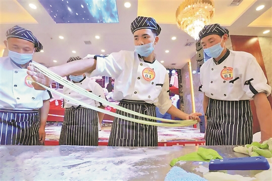 今年5月,在“拉面之乡”——海东市化隆县举办的青海省第四届拉面行业职工职业技能大赛上,来自全国各地30支代表队的107名拉面行业从业人员展技艺、亮绝活,和面、揉面、拉面、煮面,行云流水,令人目不暇接,为现场观众献上了一场美食盛宴。