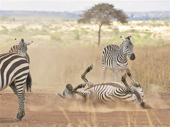 内罗毕国家公园距离内罗毕市区约7公里,是世界上为数不多的位于国家首都近郊的国家公园。在这片约117平方公里的热带草原和林地上,生活着近百种哺乳动物和500多种鸟类。图为近日在肯尼亚内罗毕国家公园拍摄的斑马。
