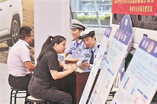 10月19日,在柳州市国际会展中心,市民在“流动警务超市”咨询、办理业务。