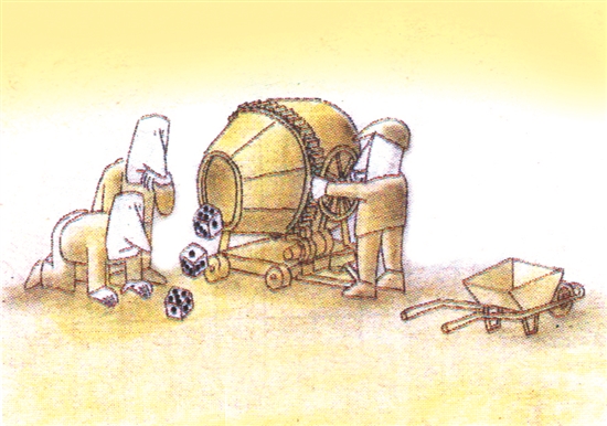 “掷骰子”赌输赢需要举手之劳,利用工地搅拌机摇一摇竟成自动化了。
