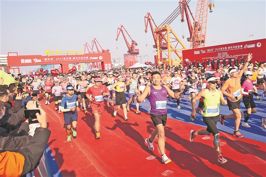 10月22日,“盛虹杯”2023连云港·徐圩马拉松赛在江苏连云港徐圩新区举办。