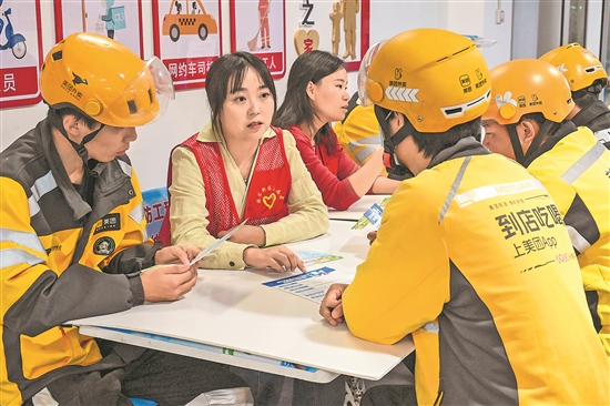 据悉,源汇区聚焦新就业形态劳动者需求,开设“暖心驿站”,提供政策咨询、法律服务、亲情关怀等系列服务,助推新业态行业高质量发展。尤亚辉 摄/人民图片
