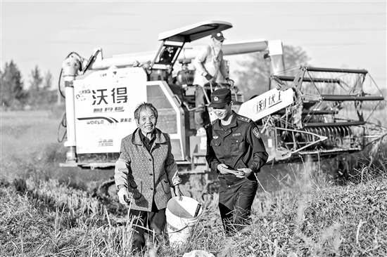 为确保辖区秋收顺利进行,安徽和县公安开启“秋收警务”模式。10月20日,和县公安局乌江派出所联合特巡警大队民警走进乡镇、田间地头,聚焦源头隐患治理、涉农纠纷化解等工作,面对面与群众“拉家常”,着力解决群众“急难愁盼”问题。