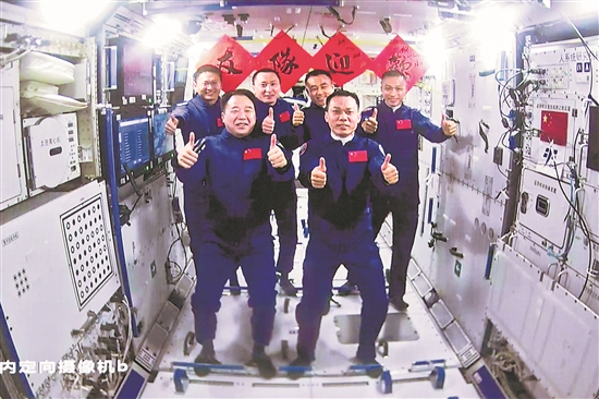 后续,两个航天员乘组将在空间站进行在轨轮换。期间,6名航天员将共同在空间站工作生活约4天时间,完成各项既定工作。新华社发(韩启扬 摄)