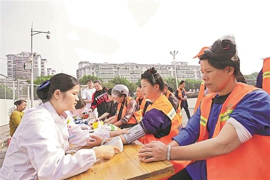 10月25日,贵州榕江,医生、志愿者等深入基层为一线环卫工人义诊。本报通讯员 王炳真 摄