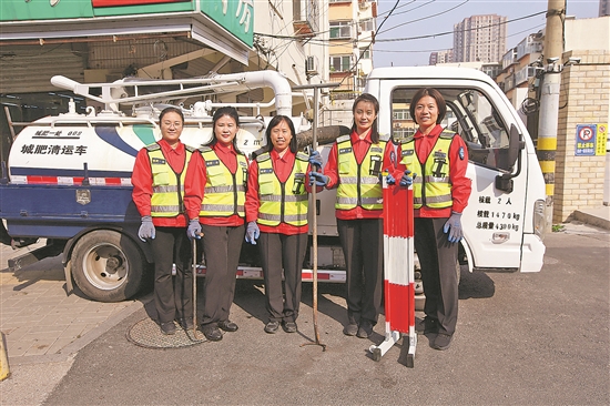 10月17日,山东济南,城肥清运管理一处女子清疏班职工在作业后合影。本报通讯员 郝鑫城 摄