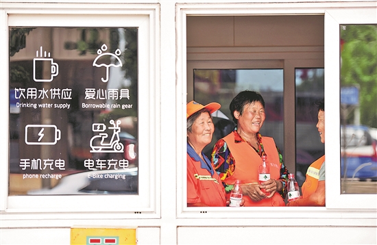7月21日,山东临沂,郯城县环卫工人工作结束后,在“爱心驿站”休息。本报通讯员 房德华 摄